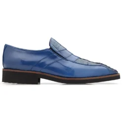 Belvedere “Gavino” Royal Blue Genuine Ostrich / Soft Calfskin Ultra Light Rubber Sole Loafer 265.