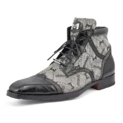Mauri “Jetset” Black / Gray Genuine Alligator / Ostrich Leg / Mauri Fabric Derby Boots 3069.