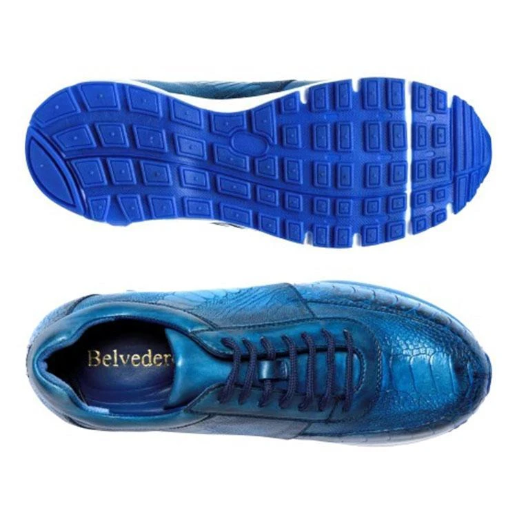 These exceptional quality sneakers are by one of the finest exotic sneakers manufacturers, Belvedere. Belvedere offers sensational exotic skin sneakers that are completely crafted and stitched. The inside is soft leather for superior comfort and the sole is handstitched in leather for excellent traction. The insole is cushioned for added shock absorption. These sneakers will fit a Medium width up to a “D” width due to the soft interior leather.