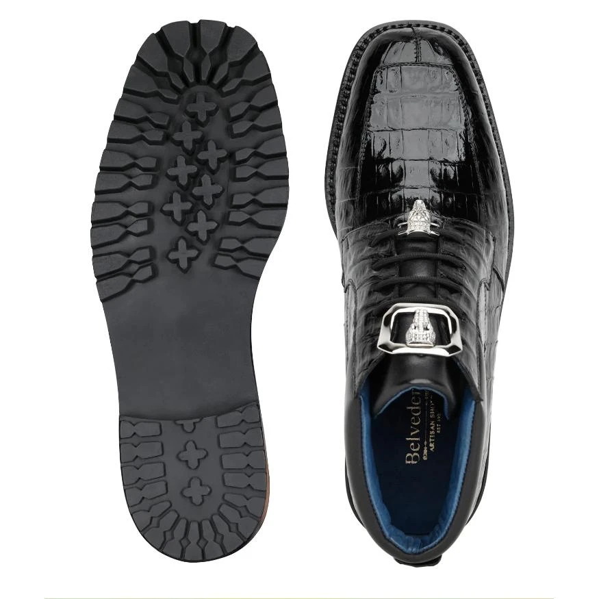 These exceptional quality exotic shoes are handmade by one of the finest exotic shoes manufacturers, Belvedere. Belvedere offers sensational exotic skin shoes that are completely hand crafted and hand stitched. The inside is a butter soft lambskin leather for superior comfort and the sole is handstitched in leather for excellent traction. The insole is cushioned for added shock absorption. These shoes will fit a Medium width up to a “D” width due to the soft lambskin interior leather.