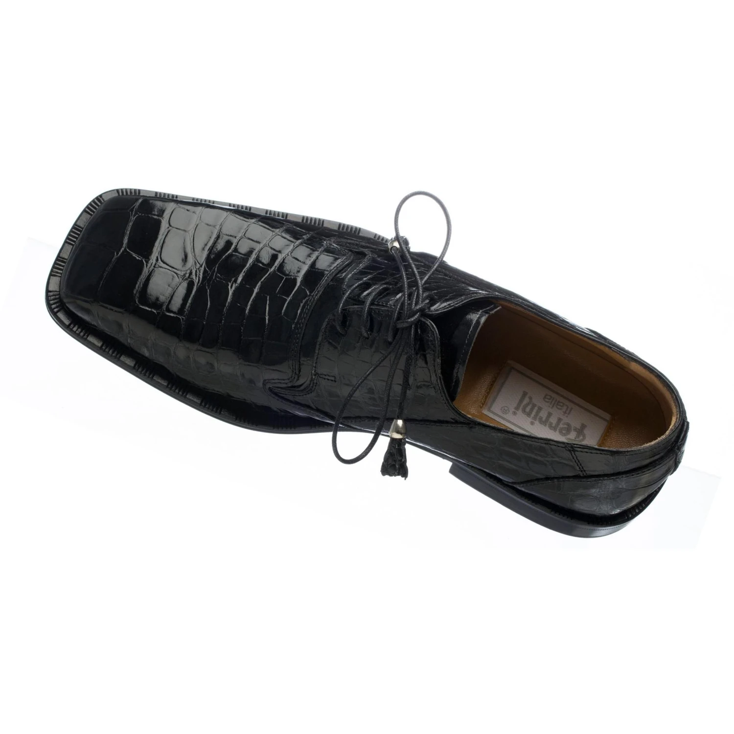 Ferrini 208/151 Black Genuine Alligator Lace Up Square Toe Shoes.