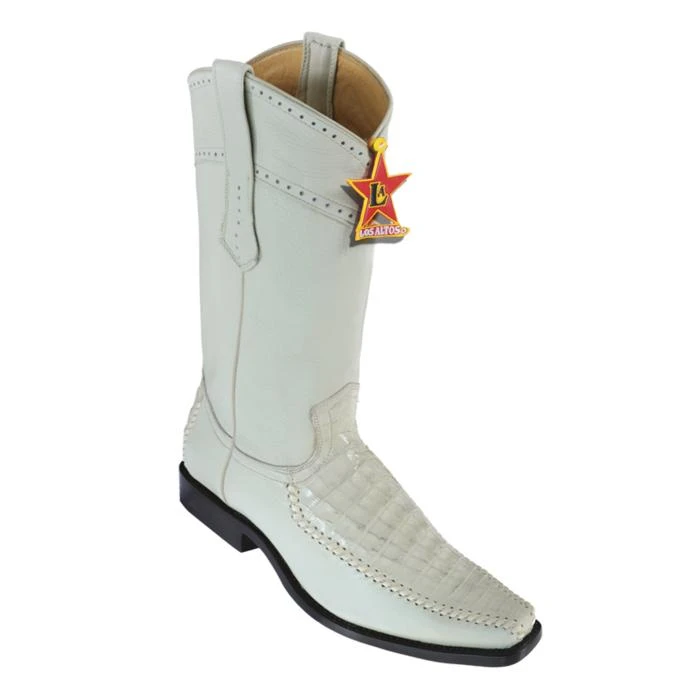 These exceptional quality genuine crocodile belly with deer skin cowboy boots are handmade by one of the finest exotic boots manufacturers, Los Altos. Los Altos offers sensational exotic skin boots that are completely hand crafted and hand stitched. The inside is a butter soft lambskin leather for superior comfort and the sole is handstitched in leather for excellent traction. The insole is cushioned for added shock absorption. Â