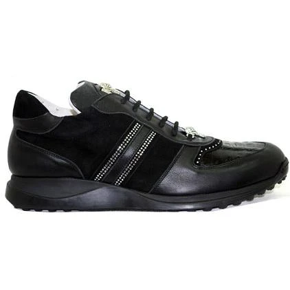 As seen the XXL magazine and Vibe magazine, these exceptional quality crocodile and nappa leather/suede sneakers are handmade by one of the finest exotic Italian sneaker manufacturers, Mauri. Mauri offers sensational crocodile sneakers that are completely hand crafted and hand stitched in Italy. These sneakers have rhine stones arranged in a pattern, silver crocodile head on the laces and silver mauri crocodile head on the tongue. The inside is a butter soft lambskin leather for superior comfort and the sole is handstitched in natural rubber for excellent traction. The insole is cushioned for added shock absorption. These sneakers will fit a Medium width up to a “D” width due to the soft lambskin interior leather.