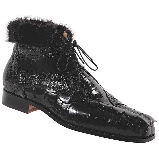 As seen the XXL magazine and Vibe magazine, these exceptional quality Genuine Ostrich Leg / Hornback Crocodile boots are handmade by one of the finest exotic Italian Shoes manufacturers, Mauri. Mauri offers sensational ostrich / calf / crocodile shoes that are completely hand crafted and hand stitched in Italy. The inside is a butter soft lambskin leather for superior comfort and the sole is hand stitched in leather for excellent traction. The insole is cushioned for added shock absorption. These shoes will fit a Medium width up to a “D” width due to the soft lambskin interior leather.Â