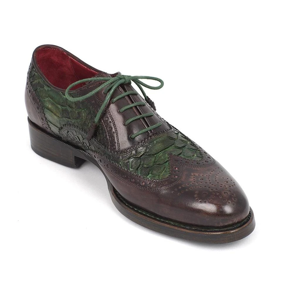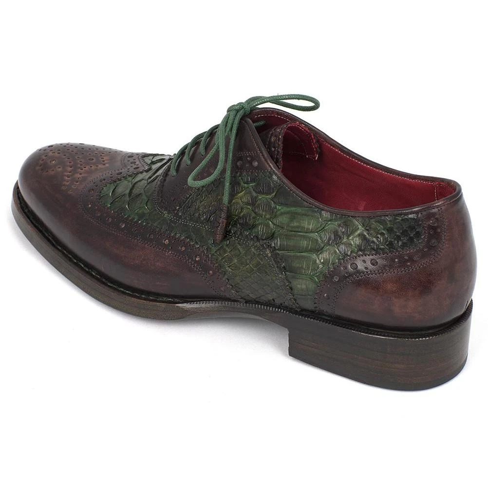 - Green genuine python & brown calfskin upper