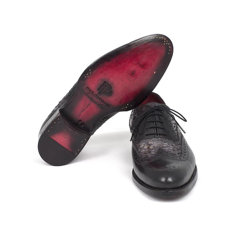 PAUL PARKMAN ® creations are all made strictly by hand in a small factory, in limited numbers; and feature obsessive research into leathers, materials and details. PAUL PARKMAN ® doesn’t use the “painted-on” process to color these shoes like other manufacturers; instead, they use a special aniline process to dye the premium grade exotic skin so that the selected color permeates the skins thoroughly. The skins maintain its color for a lifetime and becomes more beautiful with age.Â