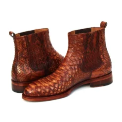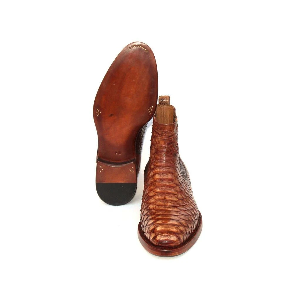 Paul Parkman ”BT89PY” Brown Genuine Python Leather Chelsea Boots.
