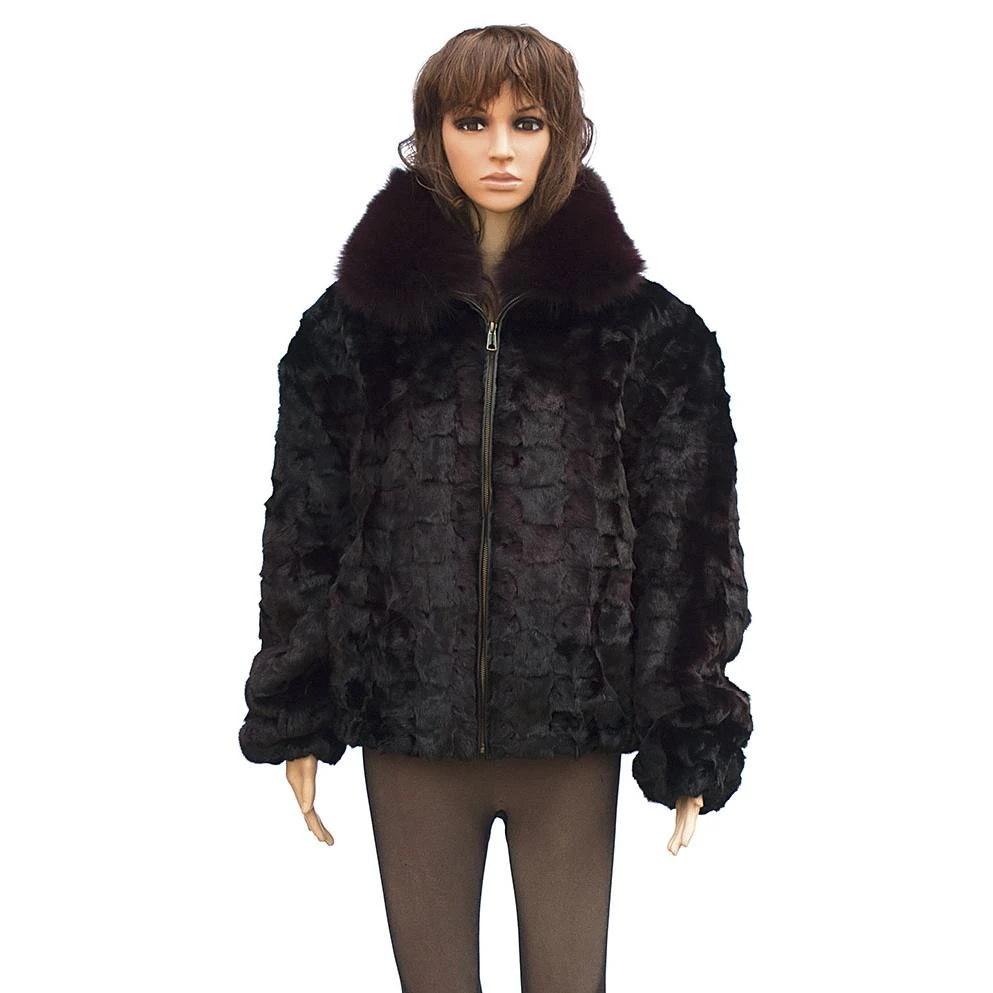 Winter Fur Ladies Burgundy Diamond Mink Jacket With Fox Collar W49S05BDT.