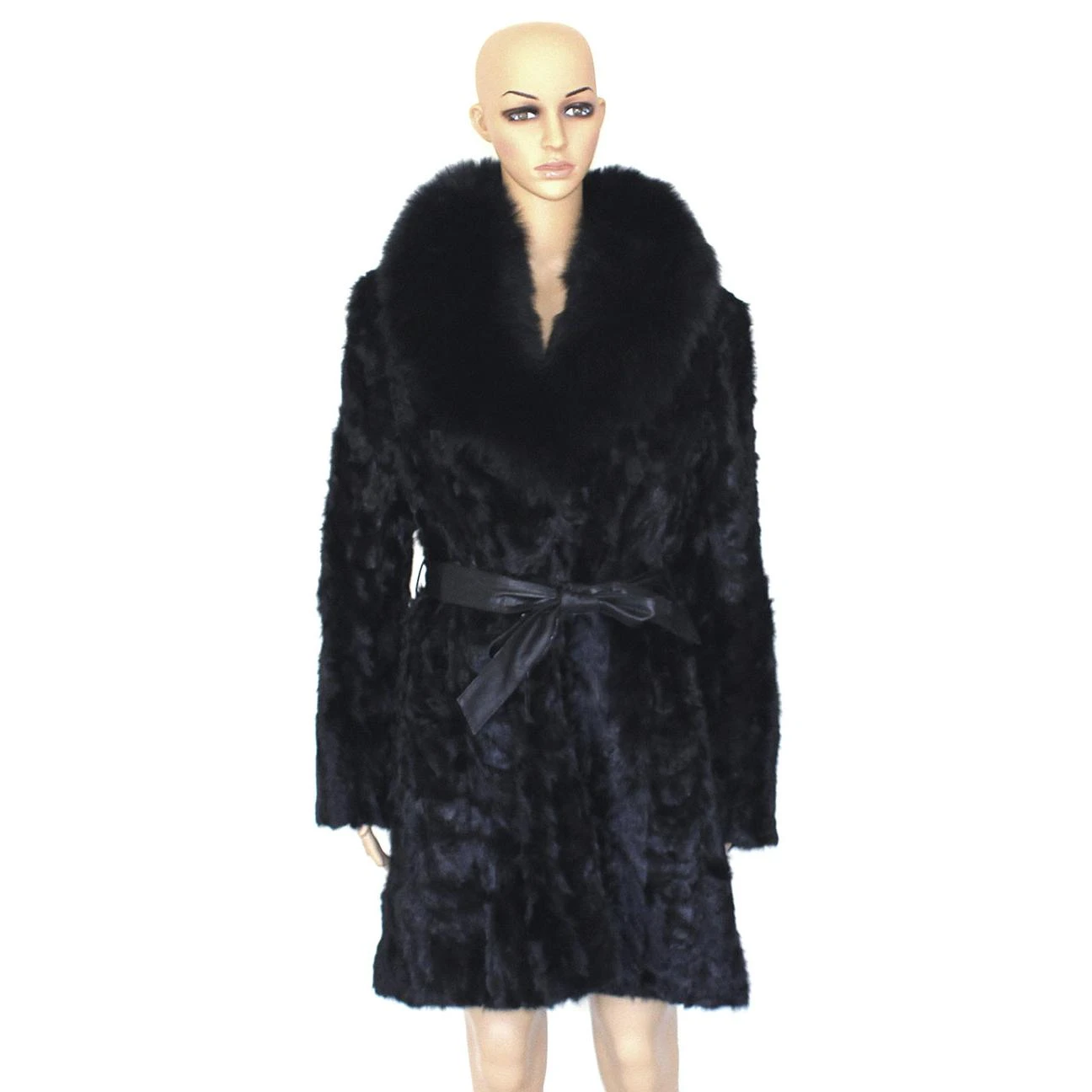 Winter Fur Ladies Pieces Mink 3/4 Coat With Fox Collar And Belt W03Q08BK