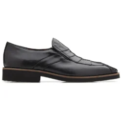 Belvedere “Gavino” Black Genuine Ostrich / Soft Calfskin Ultra Light Rubber Sole Loafer 265.