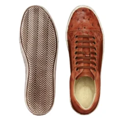 Belvedere “Gavino” Honey Genuine Ostrich / Soft Calfskin Ultra Light Rubber Sole Loafer 265.